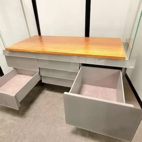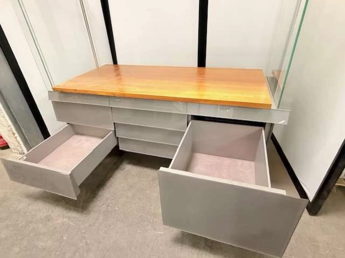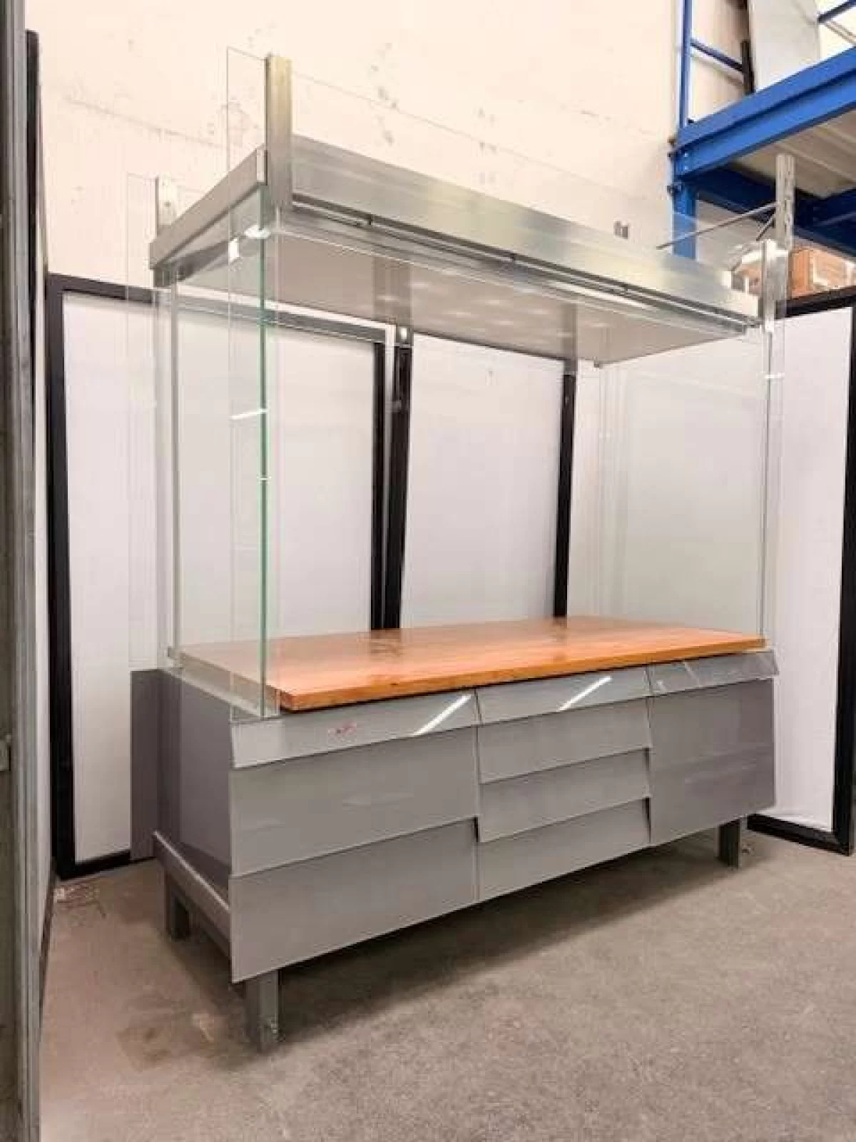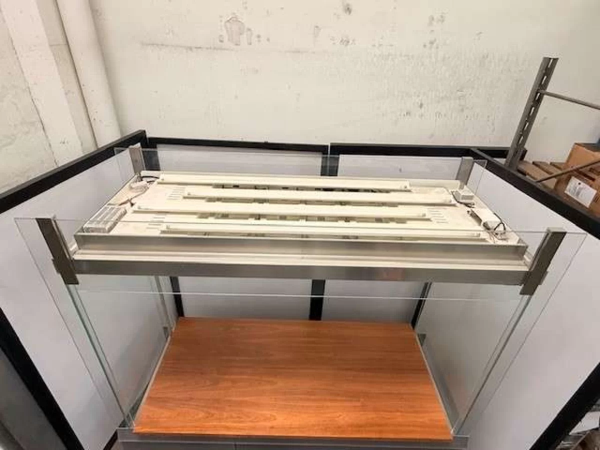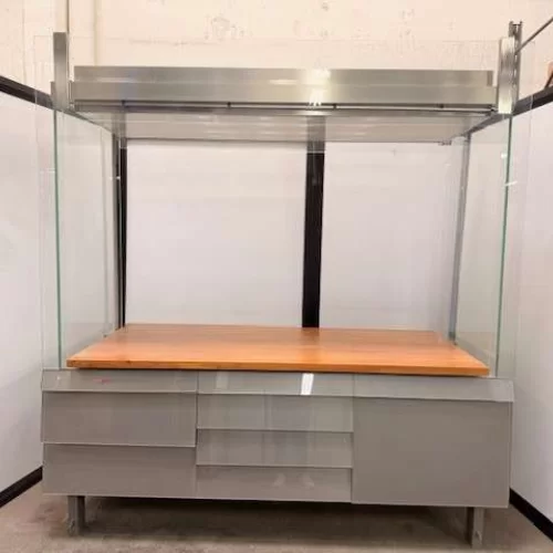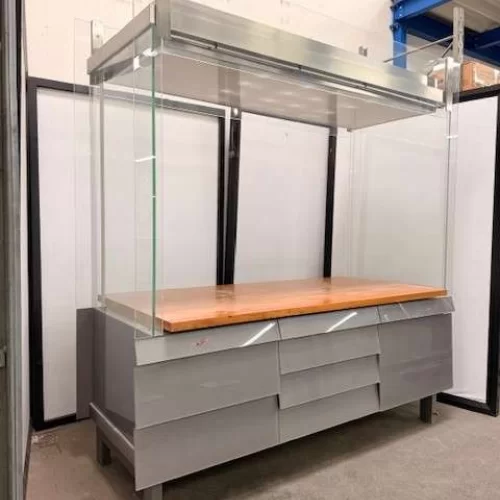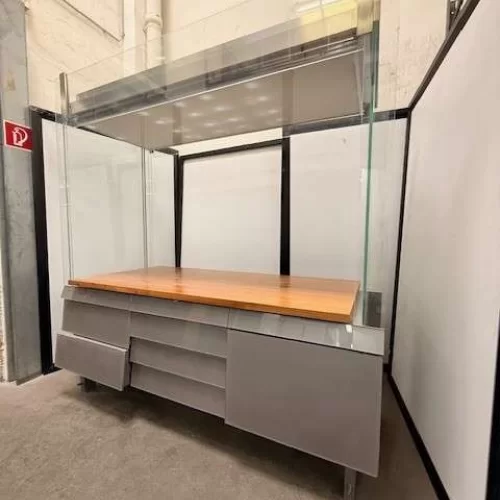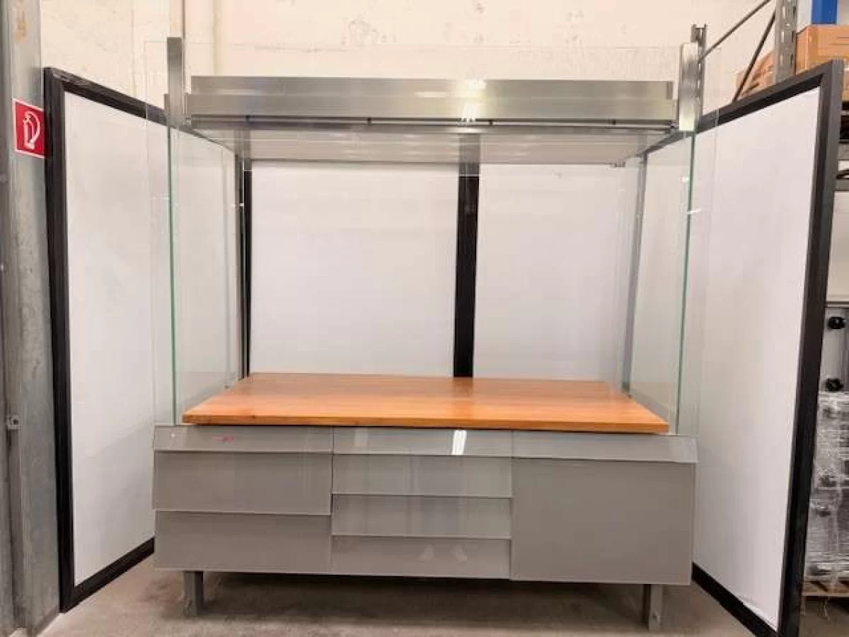 Hochwertige, professionelle Glasvitrine in musealer Qualität. Die Vitrine wurde für Ausstellungs- bzw. Präsentationszwecke konzipiert und überzeugt durch ihre äußerst stabile, langlebige Ausführung.